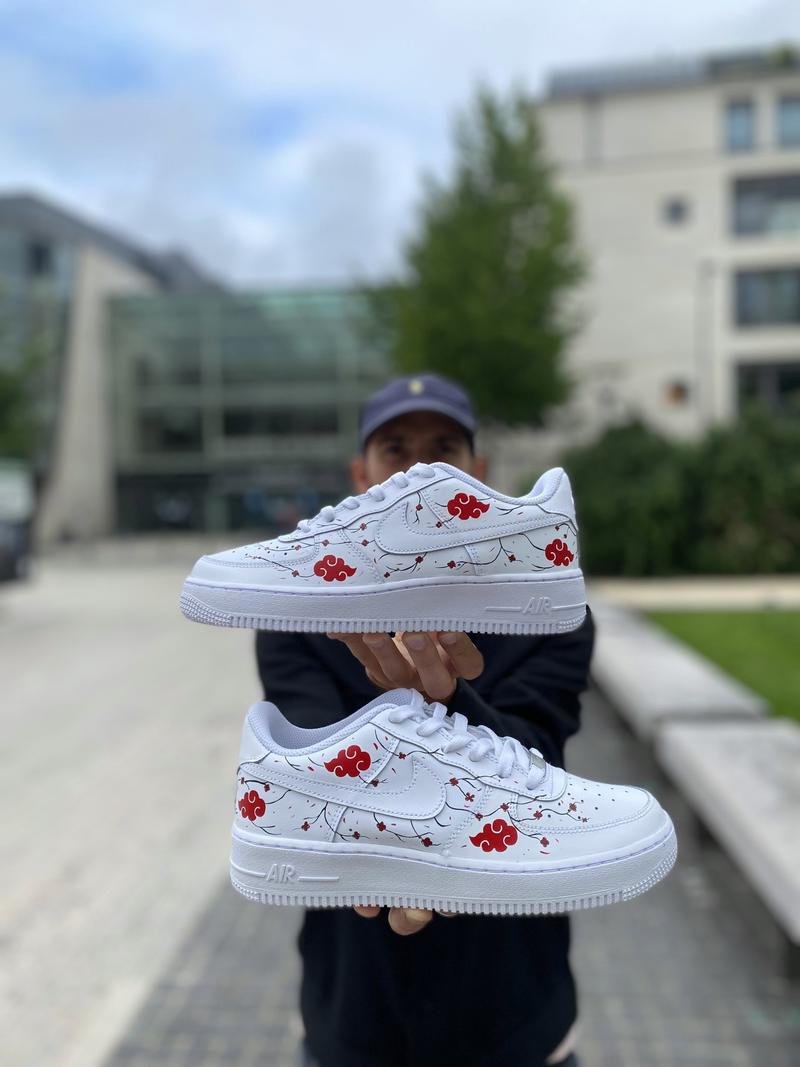 Découvrez notre nouveauté, la air force one custom akatsuki. Elle reprend la célèbre Lune rouge du manga naruto. La paire a entièrement été customisée à la main par nos artistes LBS, dans notre atelier. La customisation est réalisée uniquement sur les parties extérieures de la sneaker Chaque paire est unique, nos customisations résistent à la pluie et aux craquèlements grâce à un vernis spécial. La prestation comprend la paire et la customisation.
