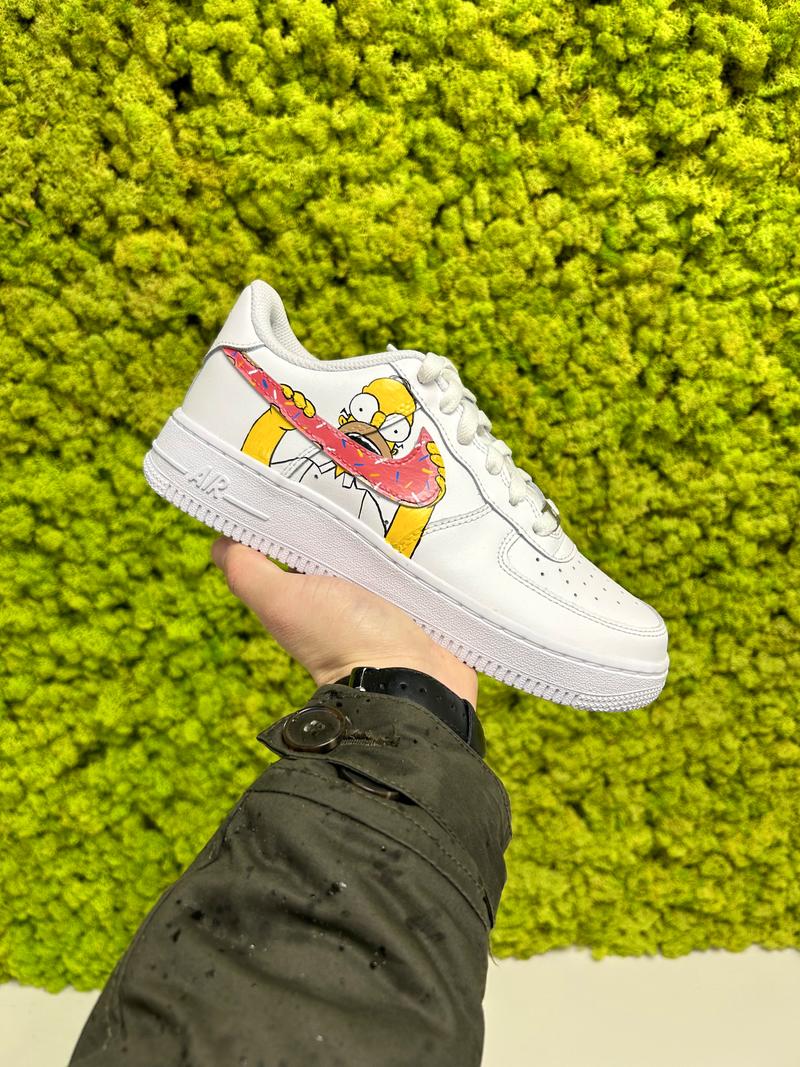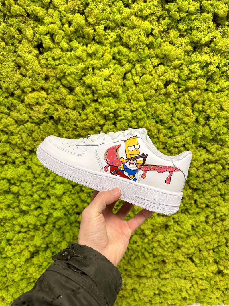 Découvrez cette Air Force One – Simpson avec Bart & Homer La paire a entièrement été customisée à la main par nos artistes LBS, dans notre atelier. Chaque paire est unique, nos customisations résistent à la pluie et aux craquèlements grâce à un vernis spécial. La prestation comprend la paire et la customisation.