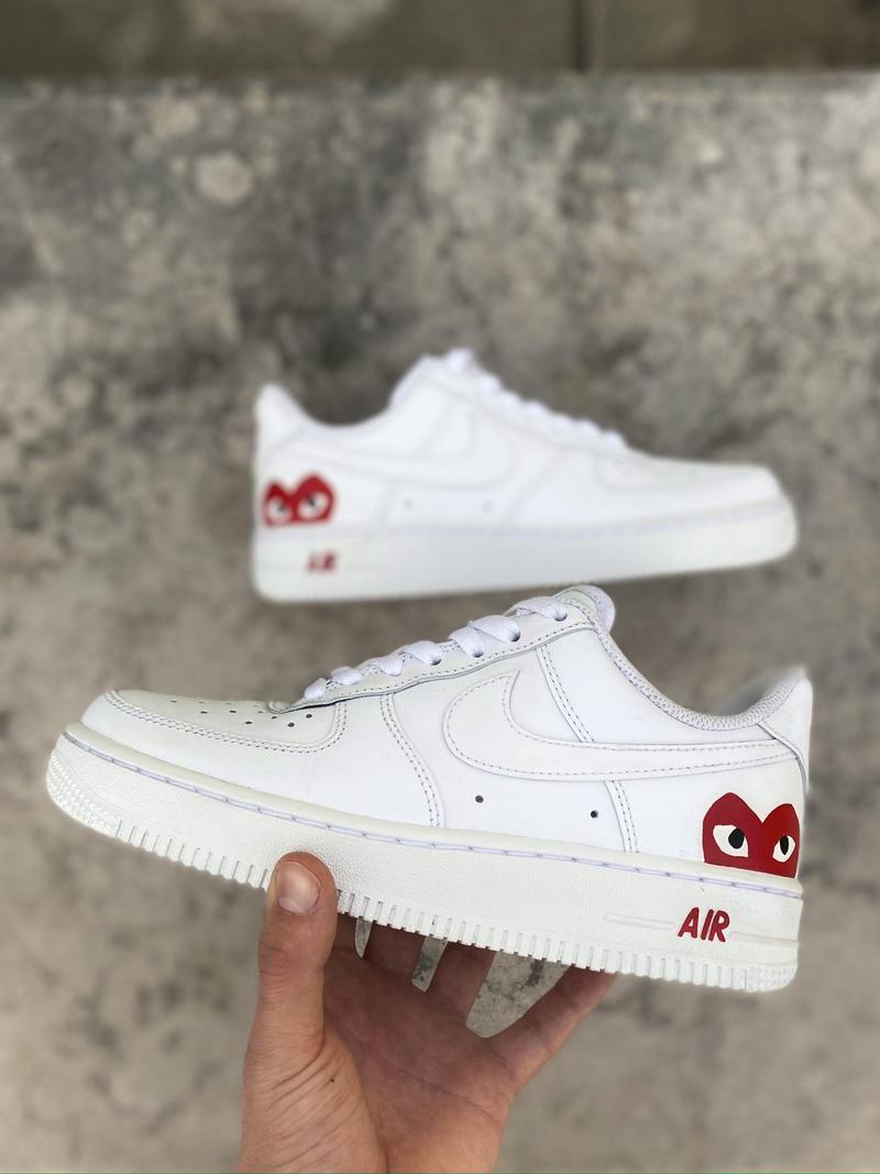 Cette paire de Air Force One est inpirée de la marque au coeur rouge. Elle plaira aux hommes comme aux femmes. La paire a entièrement été customisée à la main par nos artistes LBS, dans notre atelier. Chaque paire est unique et nos customisations résistent à la pluie et aux craquèlements grâce à un vernis spécial. La prestation comprend la paire et la customisation.