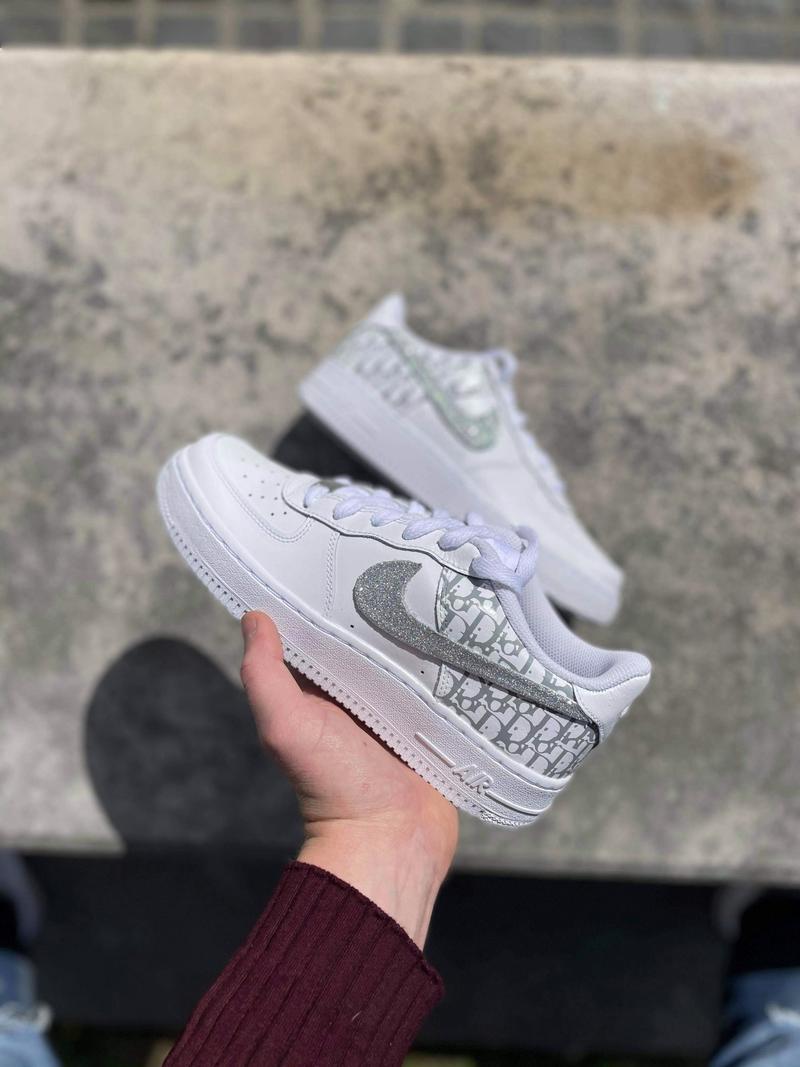 Cette Air Force One custom reprend le logo Dior sur la partie arrière de la sneaker avec une touche La paire a entièrement été customisée à la main par nos artistes LBS, dans notre atelier. Chaque paire est unique, nos customisations résistent à la pluie et aux craquèlements grâce à un vernis spécial. La prestation comprend la paire et la customisation.