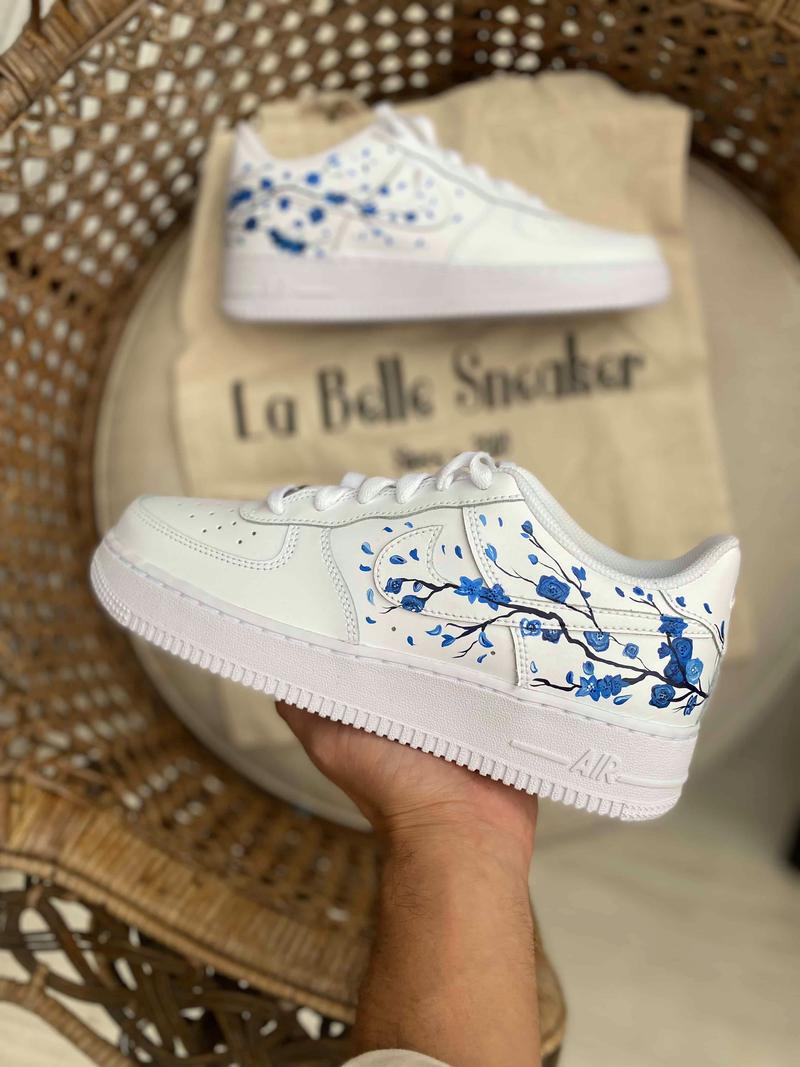 Découvrez notre nouveauté, la air force one custom – Fleurs de cerisier en version Blue – Les fleurs de SAKURA sont un véritable symbole du Japon La paire a entièrement été customisée à la main par nos artistes LBS, dans notre atelier. La customisation est réalisée uniquement sur les parties extérieures de la sneaker Chaque paire est unique, nos customisations résistent à la pluie et aux craquèlements grâce à un vernis spécial. La prestation comprend la paire et la customisation.