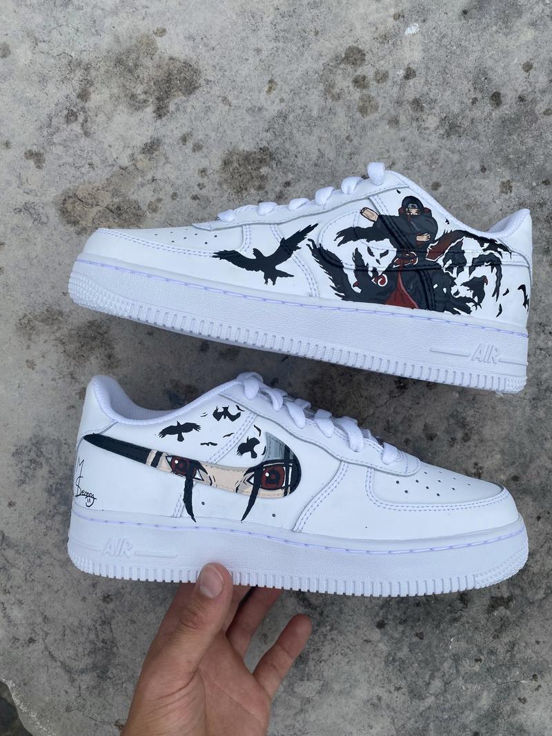 Découvrez notre nouveauté, la air force one custom – Itachi Elle reprend le célèbre manga Naruto La paire a entièrement été customisée à la main par nos artistes LBS, dans notre atelier. La customisation est réalisée uniquement sur les parties extérieures de la sneaker Chaque paire est unique, nos customisations résistent à la pluie et aux craquèlements grâce à un vernis spécial. La prestation comprend la paire et la customisation.