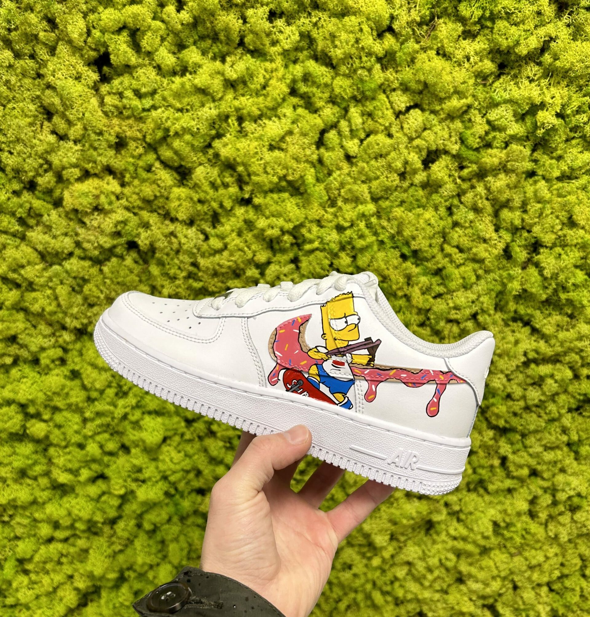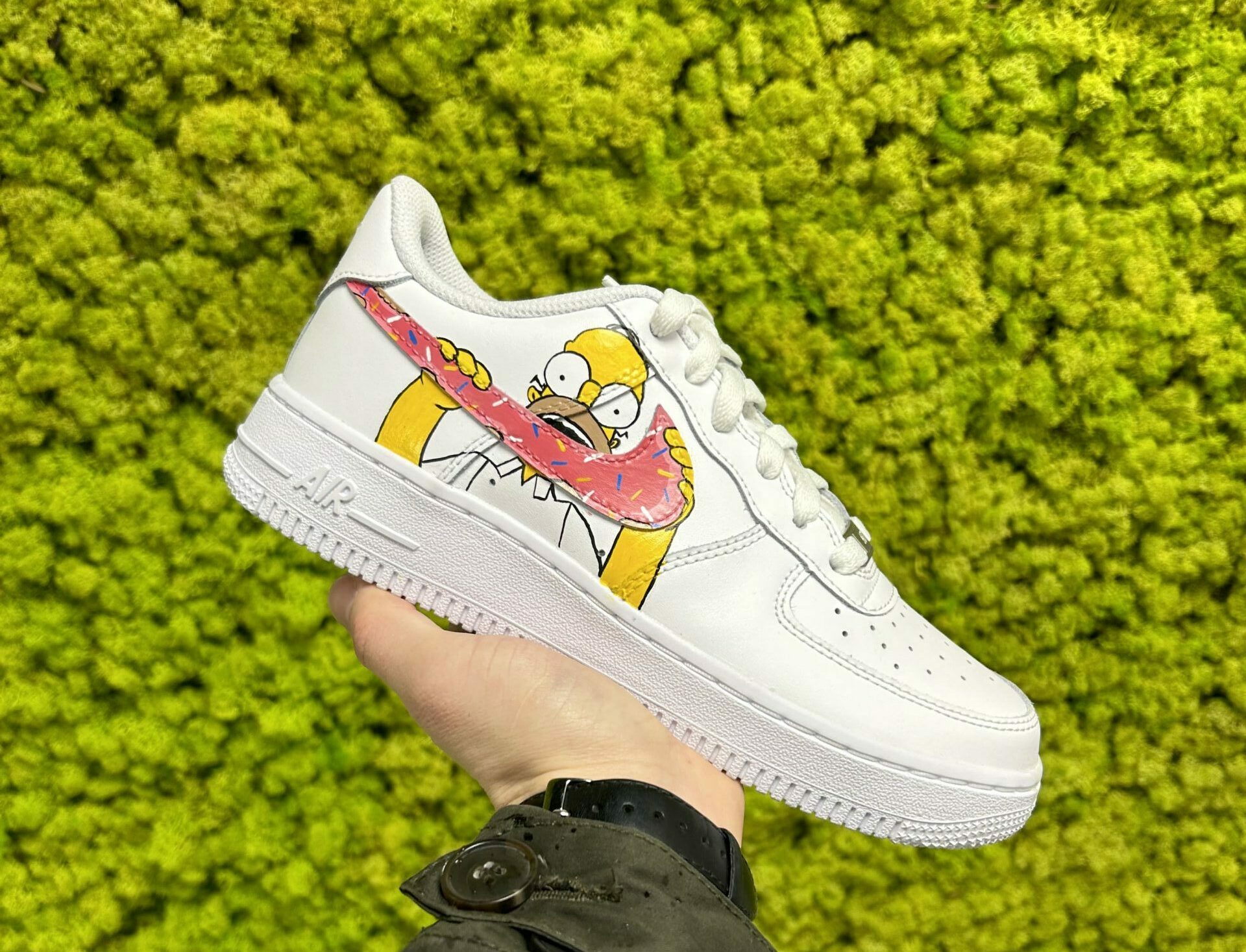 Air Force One – Customisation Swoosh Simpson Le design s’inspire du célèbre animé les Simpson La paire a entièrement été customisée à la main par nos artistes LBS, dans notre atelier. Chaque paire est unique, nos customisations résistent à la pluie et aux craquèlements grâce à un vernis spécial. La prestation comprend la paire et la customisation.