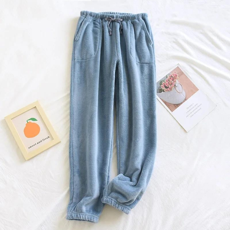 Ce bas de pyjama de couleur bleue est légèrement élastique au niveau de la taille et des chevilles. Il possède également une corde de serrage au niveau de la taille ainsi que deux poches pour plus de praticité.