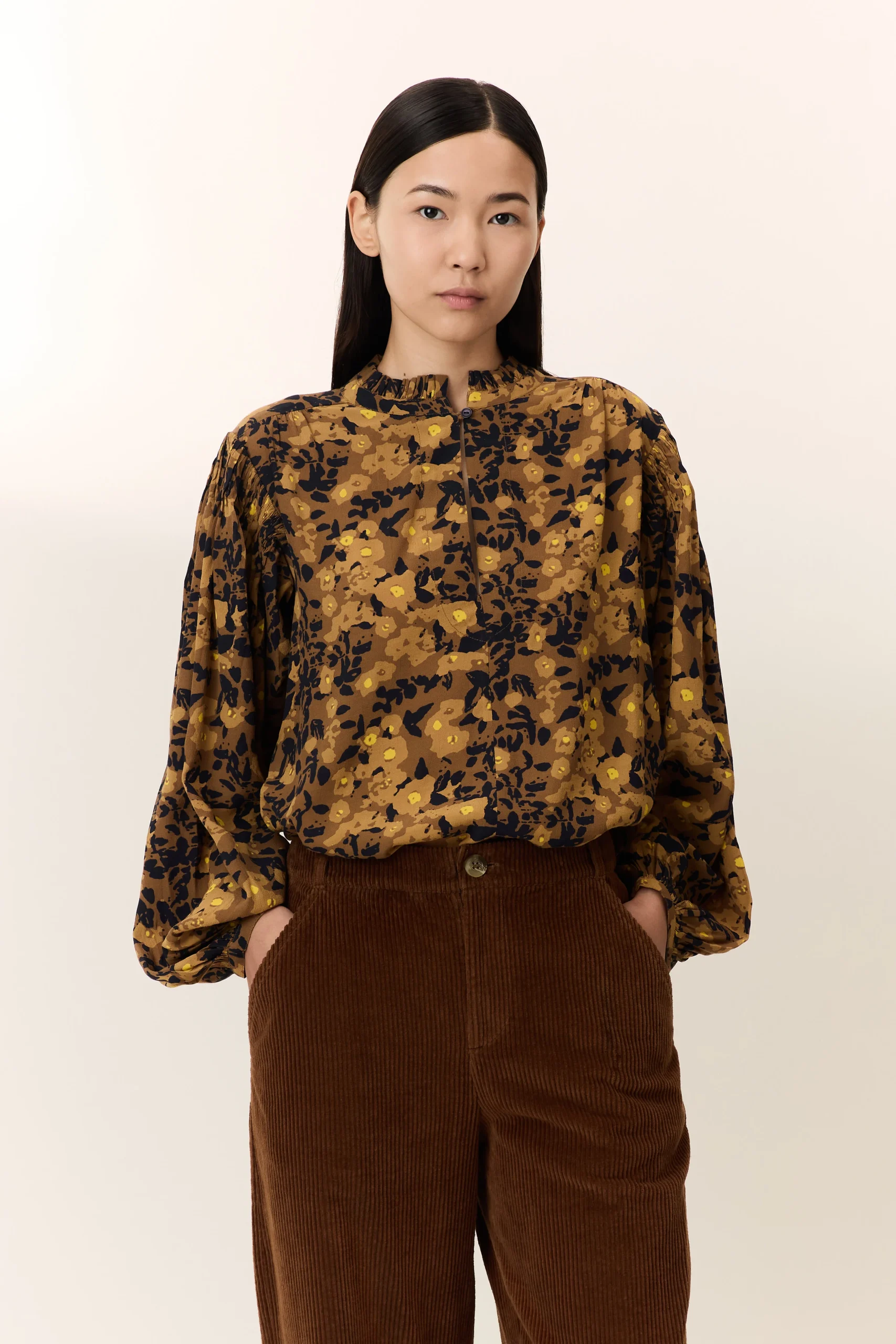 Blouse Catz Flower par Leon & Harper, signature d’une allure bohème contemporaine. Sa coupe fluide instaure un mouvement naturel, accompagnée de manches volumineuses structurées par des poignets smockés. L’imprimé à fleurs révèle le style spontané cher à la marque. Ce modèle s’accorde parfaitement à un jean droit pour un quotidien urbain, ou à un pantalon ample pour souligner une silhouette plus audacieuse.