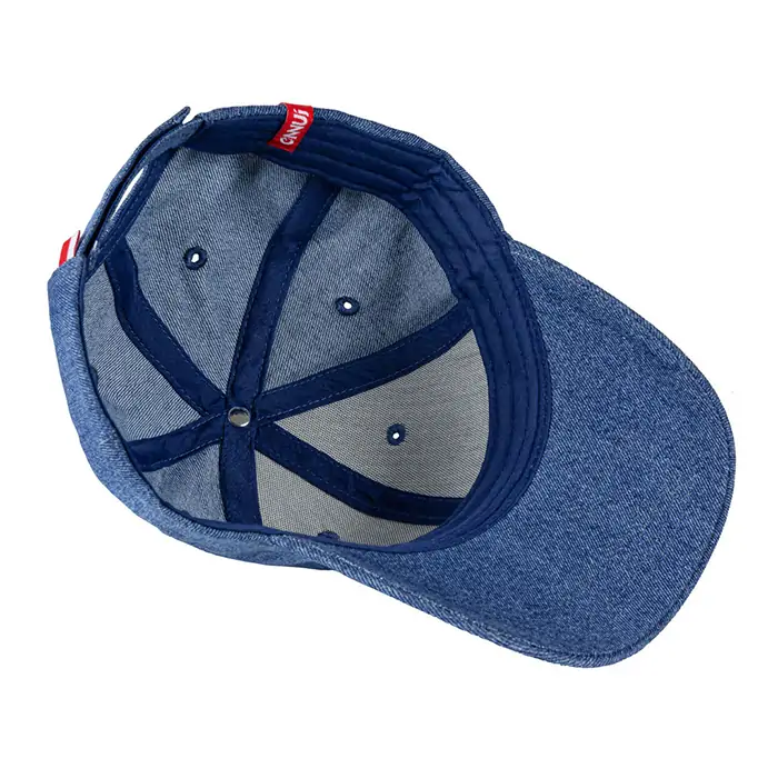 - Couleur : Denim avec patch logo rouge et blanc