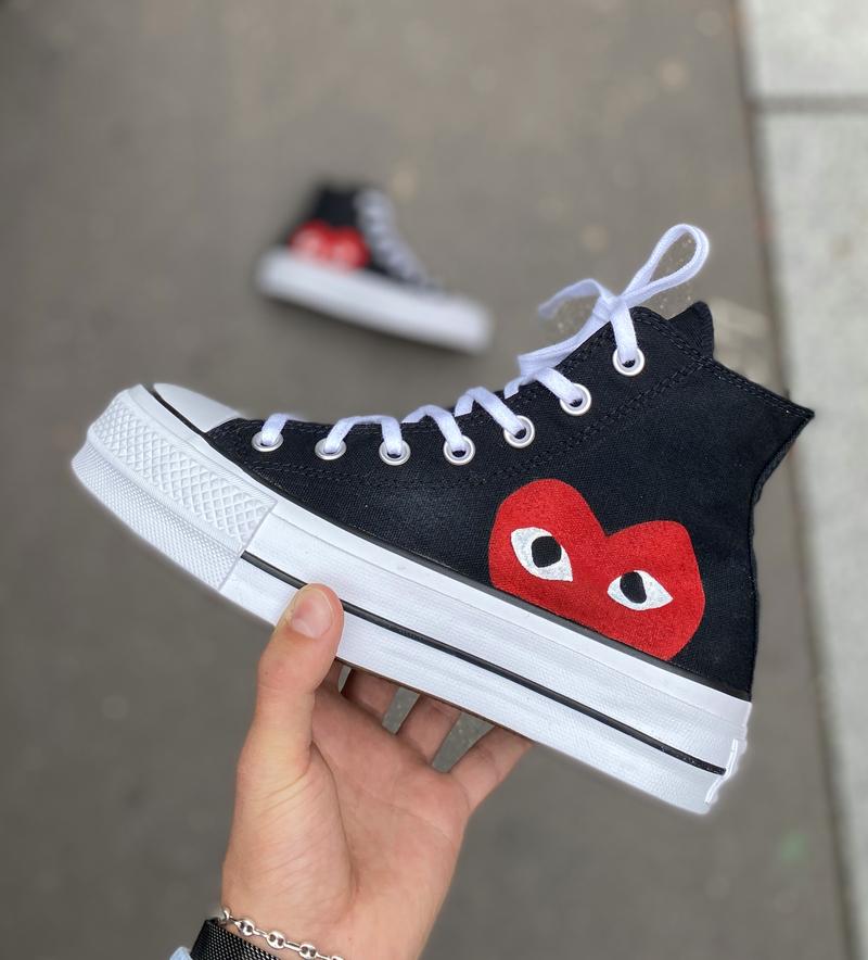 Découvrez cette Converse Plateform – CDG – Comme des Garçons. Cette customisation est à la fois simple et convient à tous les styles, homme et femme. Cette customisation de sneakers reprend le style du manga pour un style unique La paire a entièrement été customisée à la main par nos artistes LBS, dans notre atelier. Chaque paire est unique, nos customisations résistent à la pluie et aux craquèlements grâce à un vernis spécial. La prestation comprend la paire et la customisation.