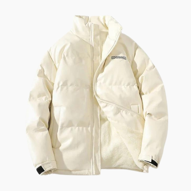 Doudoune très chaude de couleur crème avec un intérieur en duvet pour femme.