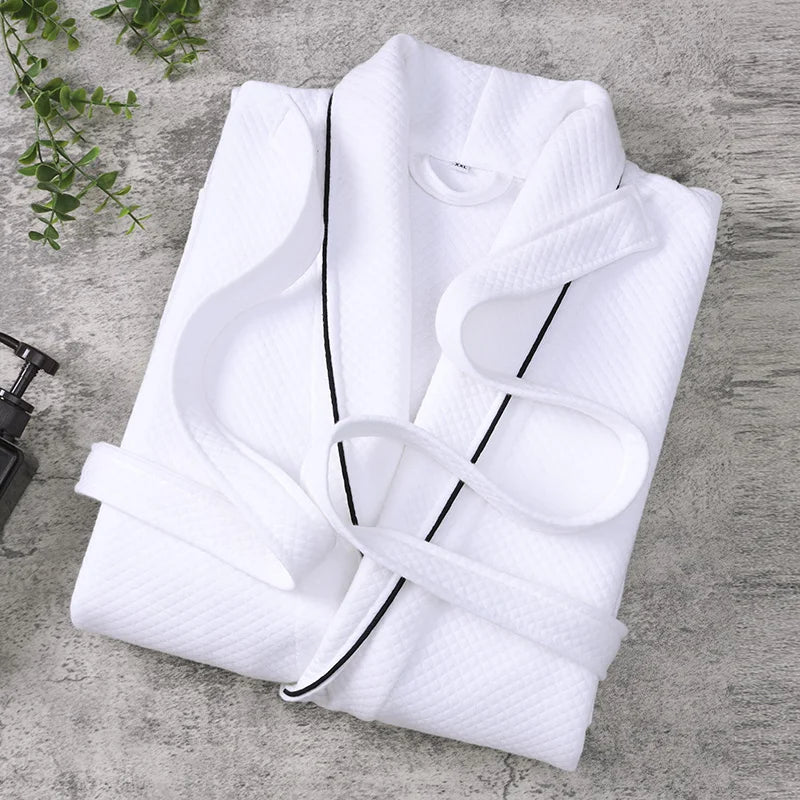 Le peignoir de bain est un vêtement ample, généralement conçu en tissu absorbant tel que le coton ou le velours éponge, permettant de se sécher rapidement tout en restant au chaud. Il est doté d’une ceinture pour le fermer et souvent d’une capuche pour couvrir la tête.