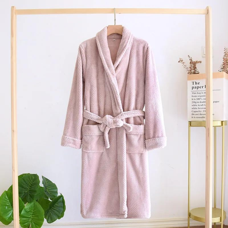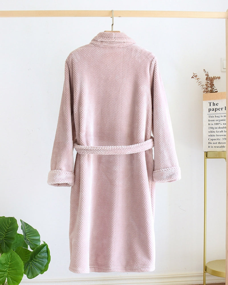 Ce peignoir tout doux pour femme est de couleur rose clair, un ton très en vogue pour un rendu féminin et élégant. Ce modèle est équipé d’un col en V, de deux poches et d’une ceinture pour une meilleure tenue.