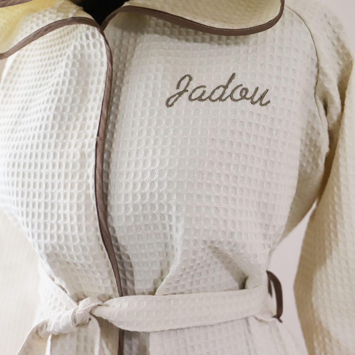 Le peignoir JADOU est confectionné avec soin dans notre atelier, il offre une légèreté idéale pour les moments de détente après la douche ou pour flâner à la maison. Son tissu en nid d’abeille garantit une absorption optimale tout en offrant une légèreté incomparable. Grâce à notre service de broderie, pensez à la personnalisation, avec un prénom ou des initiales, idéal pour offrir ! Disponible du 2 ans au 12 ans en 4 coloris, vos enfants apprécieront aussi sa grande capuche et ses 2 larges poches.