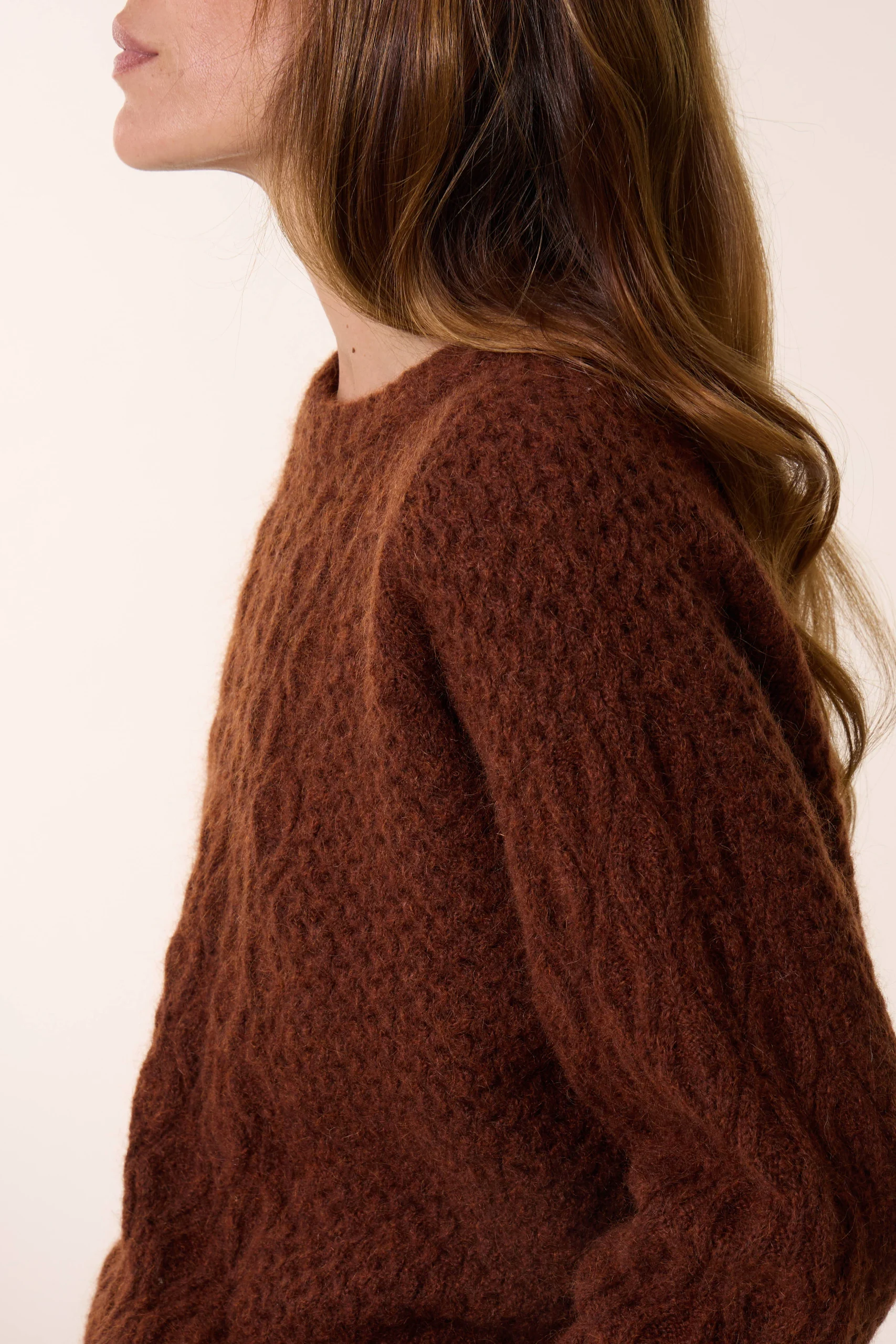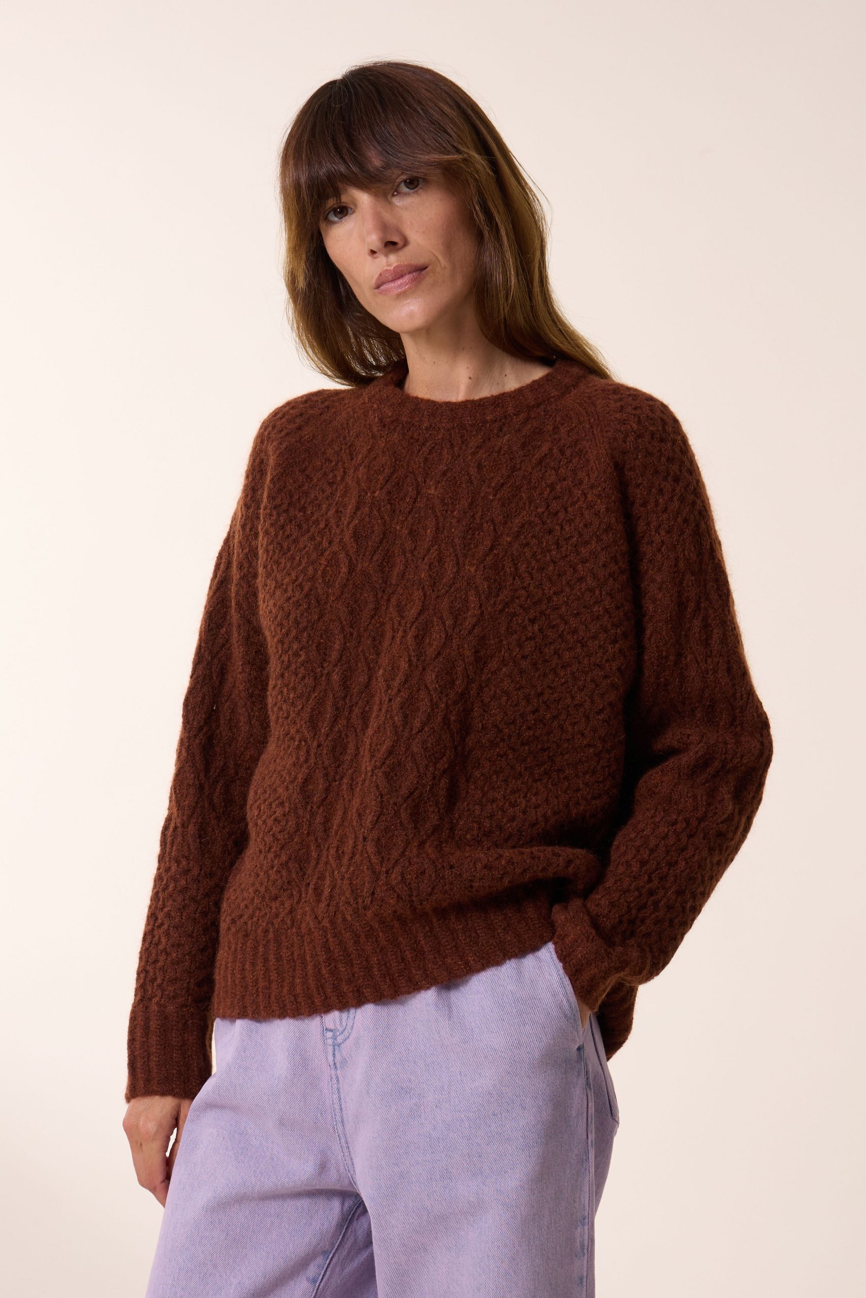 Le motif torsadé du pull Marius CHN apporte une allure traditionnelle. Entre confort et résistance, son caractère authentique gardera la femme Leon & Harper au chaud tout l’hiver.