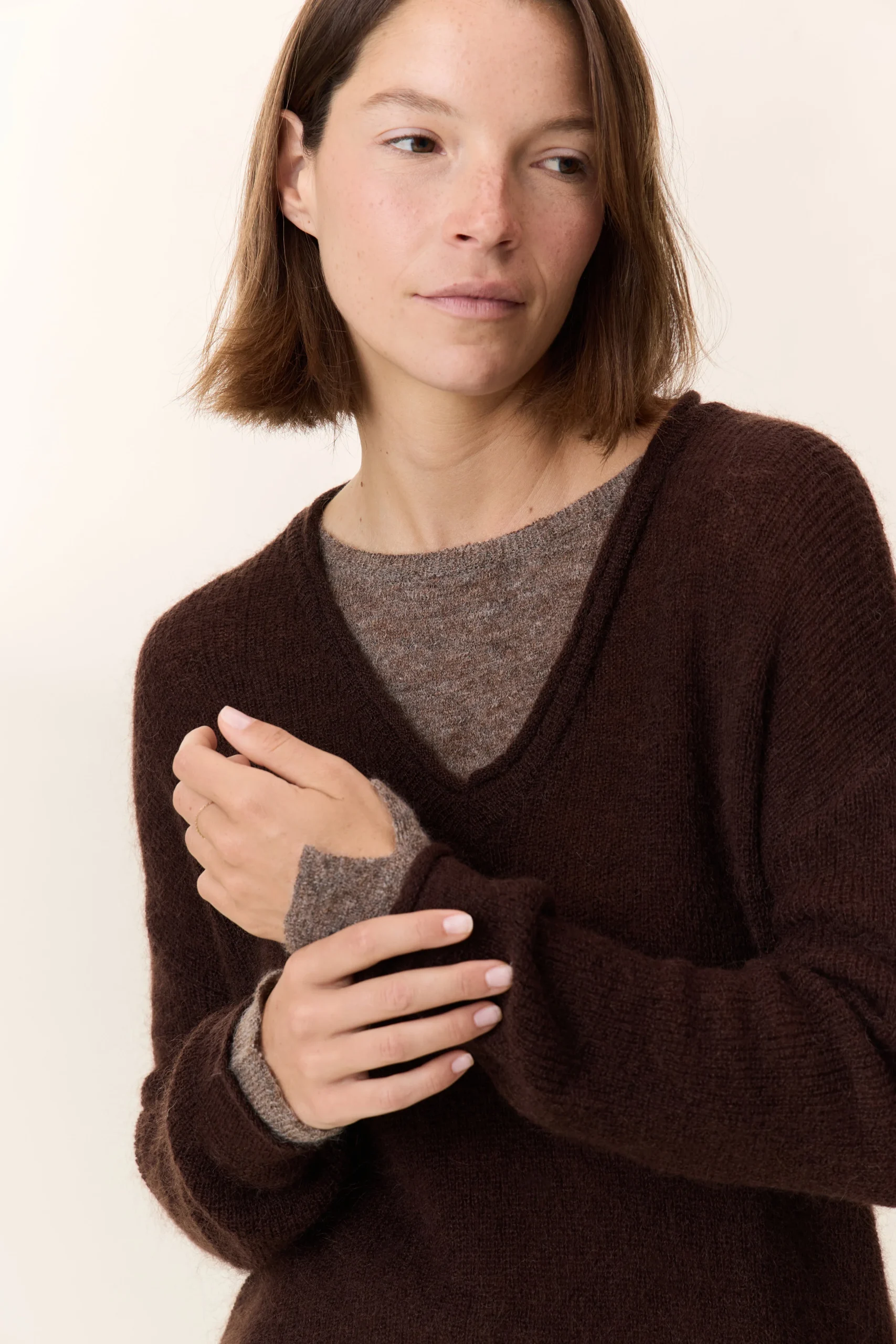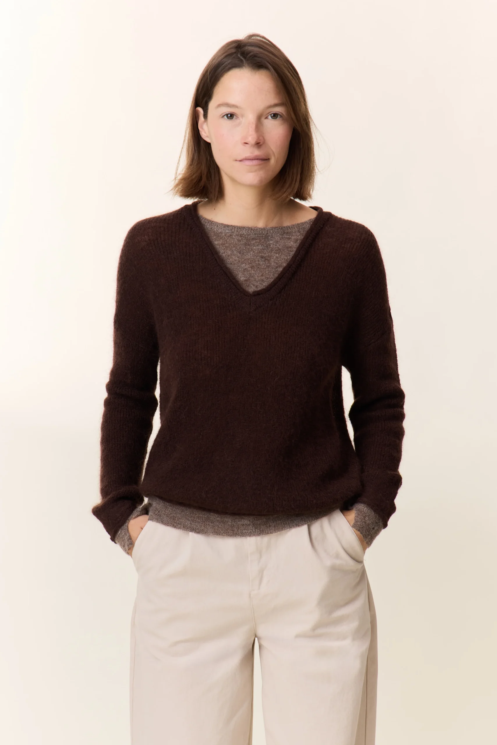 Pensé pour celles qui veulent conjuguer style et liberté, le pull Millipe Dual présente une double encolure qui apporte un effet superposé. Sa maille duveteuse et texturée révèle un travail de finition précis, avec une coupe ample qui garantit un tombé naturel. Discrète, la fente aux poignets apporte une note moderne, tandis que l’ourlet superposé vient souligner le caractère identitaire de la pièce. À porter avec un pantalon large pour une allure actuelle.