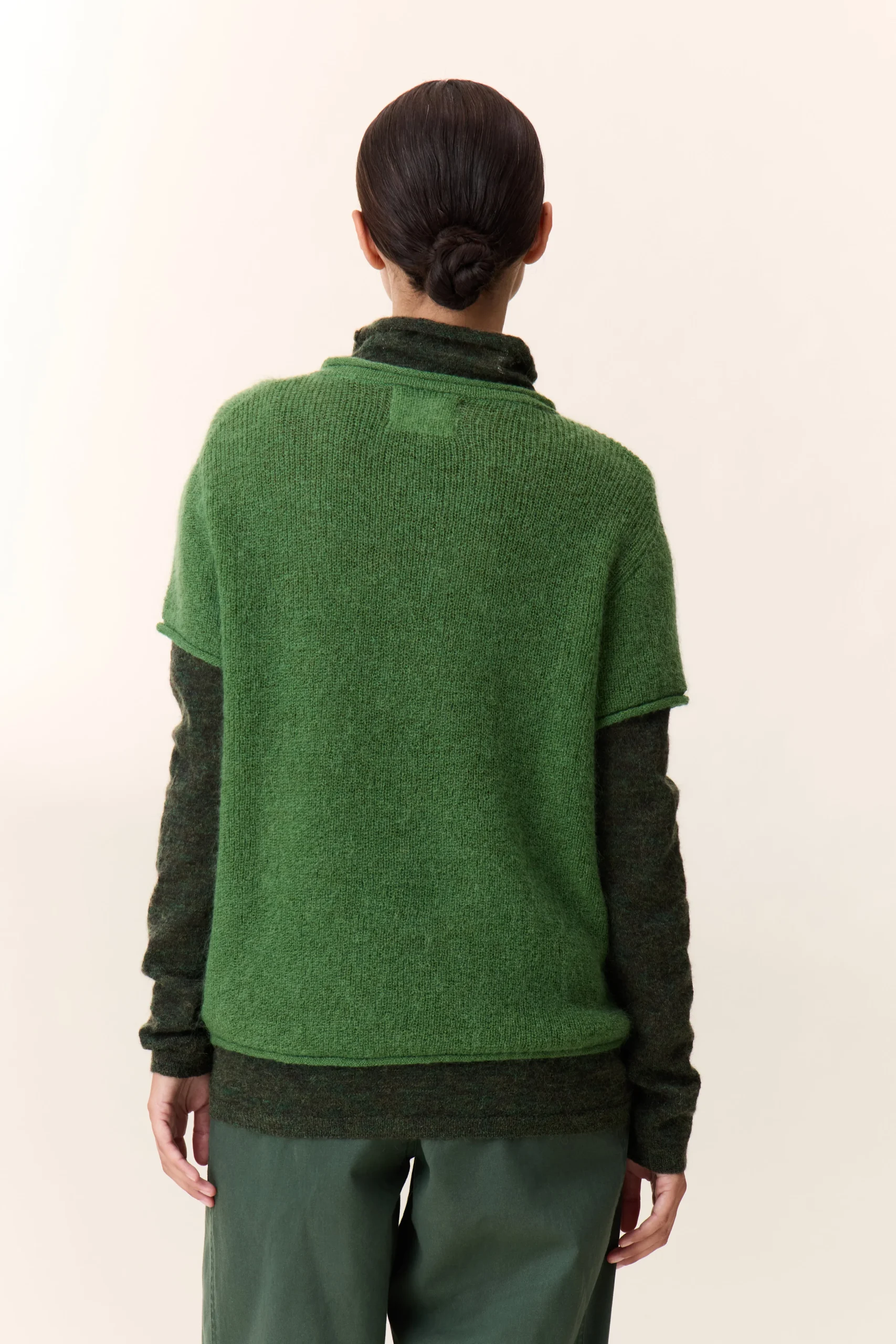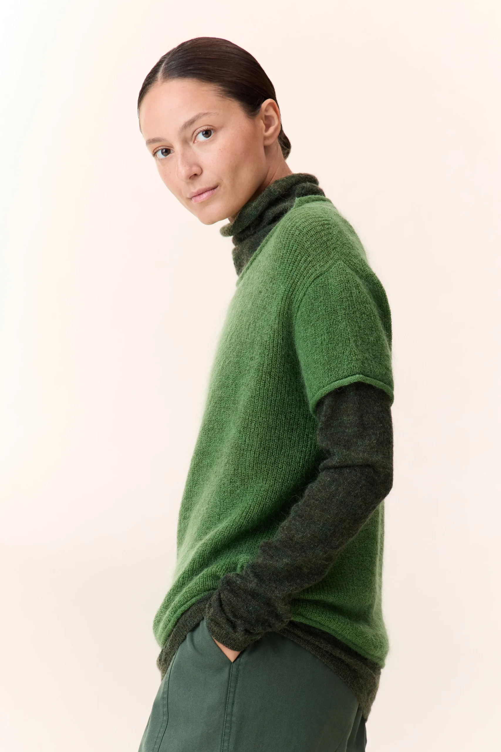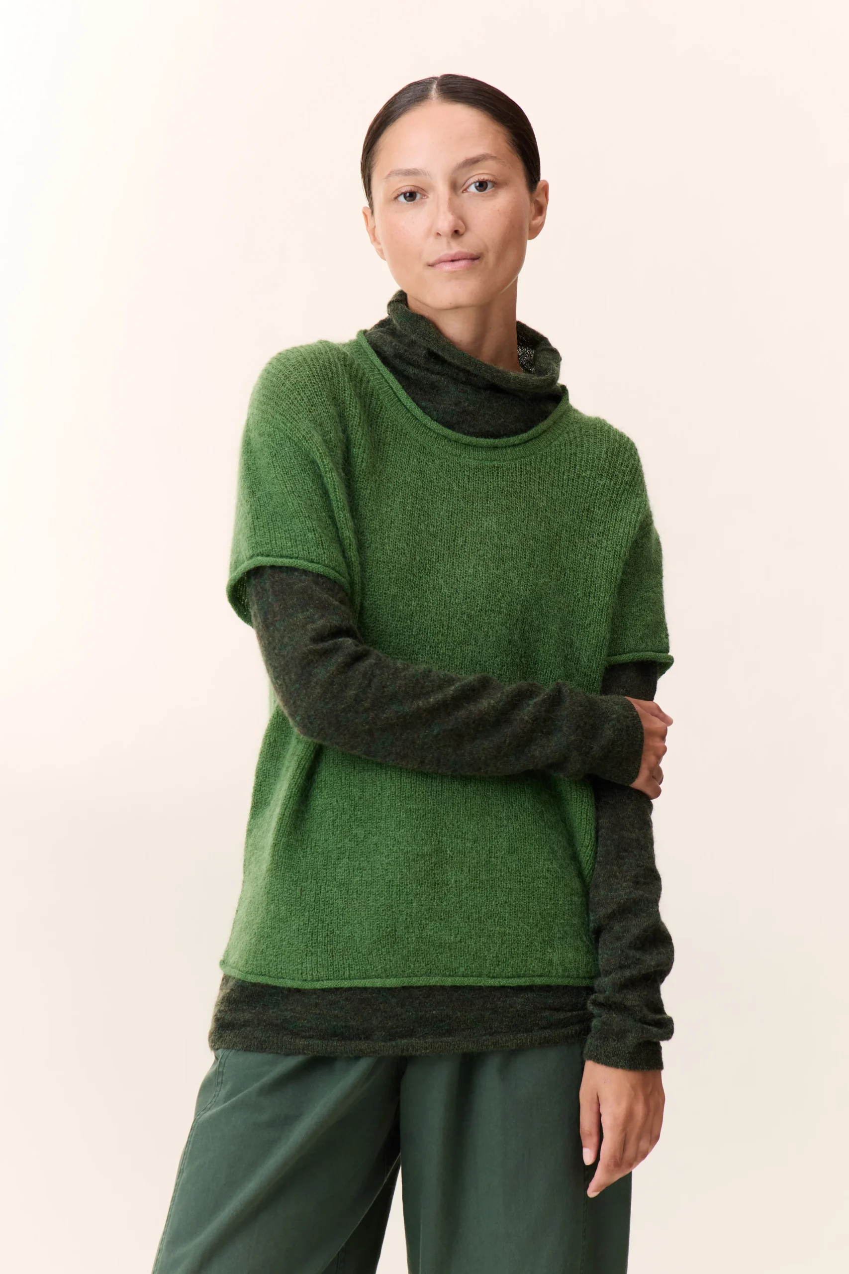 Le pull Mollie Dual par Leon & Harper explore la superposition avec une silhouette pensée pour la liberté de mouvement. Le jeu de superposition combine un pull extérieur ample à manches courtes et un col roulé à manches longues, offrant un contraste de volumes et une allure moderne. Sa maille, mélange de laine et de mohair, apporte légèreté et fluidité, tandis que les finitions précises témoignent du savoir-faire de la marque. Il se porte idéalement avec un pantalon près du corps ou un jean.