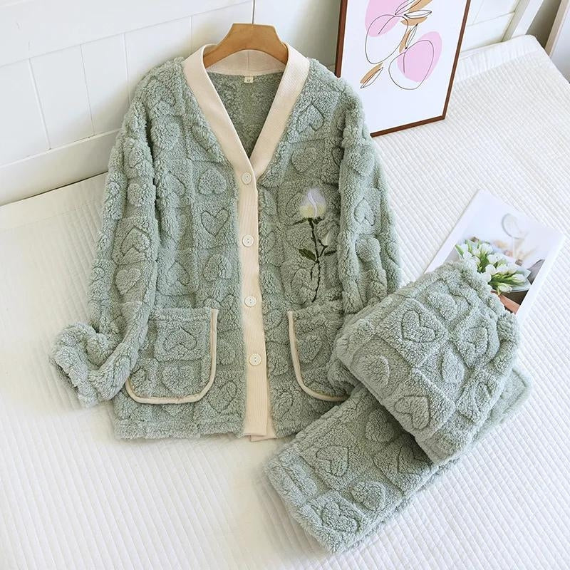 Une fleur finement brodée au niveau de la poitrine pour une touche de style rend ce pyjama unique en son genre. En matière Pilou Pilou, ce pyjama promet une douceur irrésistible et une chaleur bienfaisante pour les nuits fraîches. Sa fermeture à boutons à l’avant assure une simplicité d’enfilage tout en préservant un style intemporel.