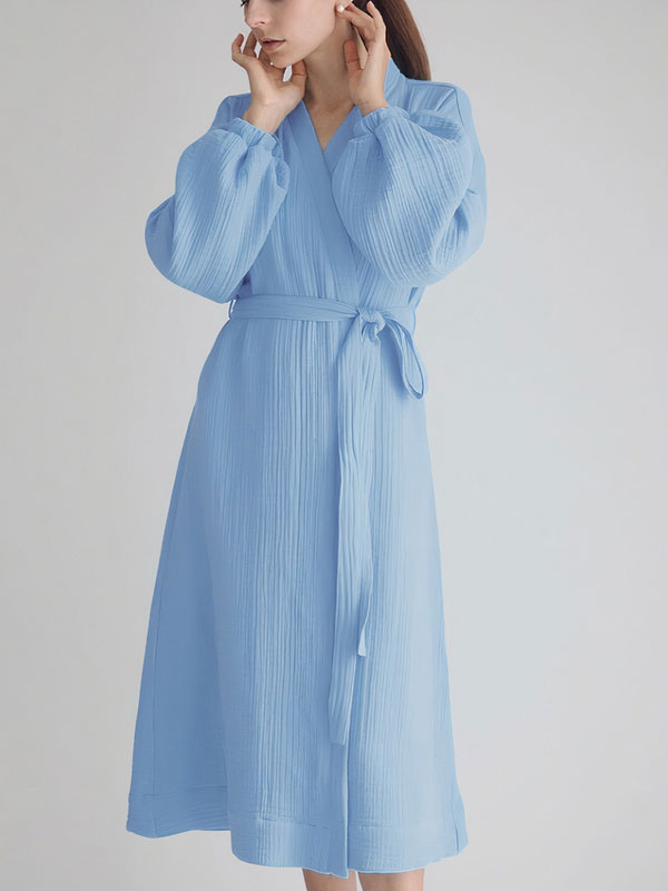 Robe de Chambre en Coton « Chaleur Douce » Bleu Ciel – Douceur et Élégance pour Vos Soirées d’Hiver