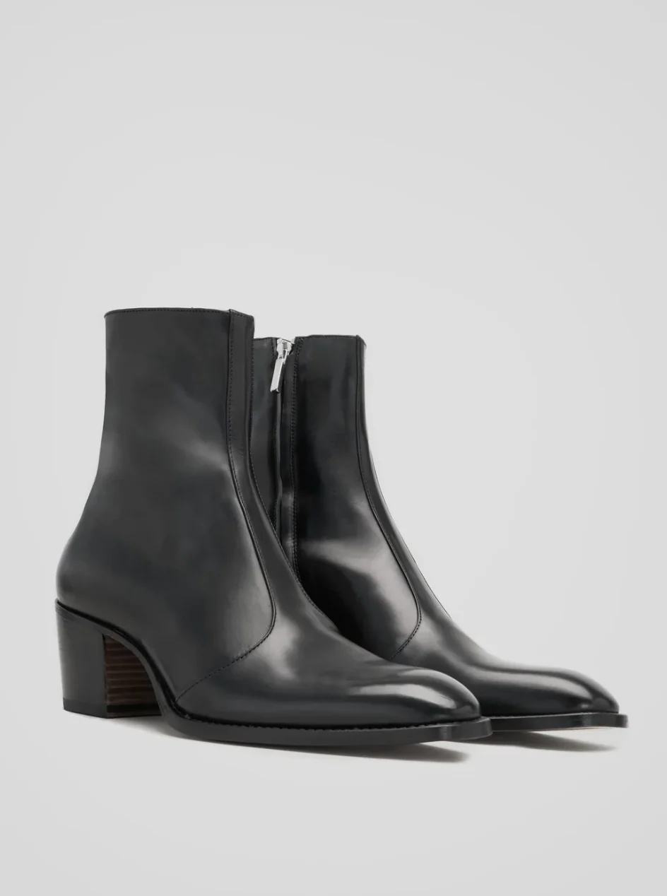 60 mm dans un talon en bois plus épais et une semelle en cuir plus épaisse font de la bottine ROMAN la plus polyvalente de nos bottes à talons hauts. Fabriquée à la main en Italie avec un cuir de veau souple et une semelle en cuir, cette botte est conçue pour impressionner. Rock on !