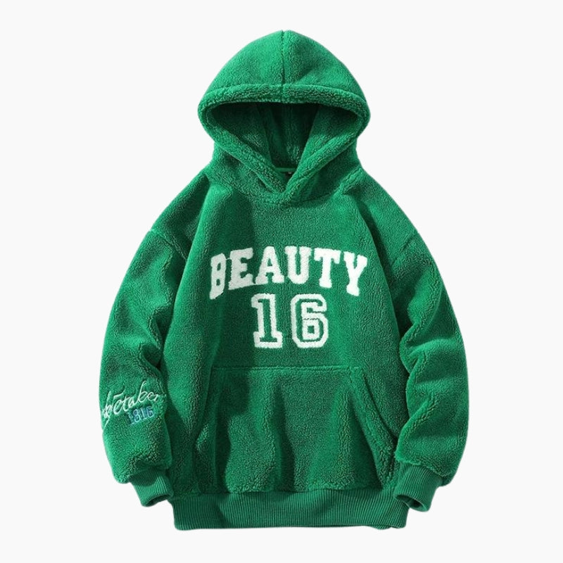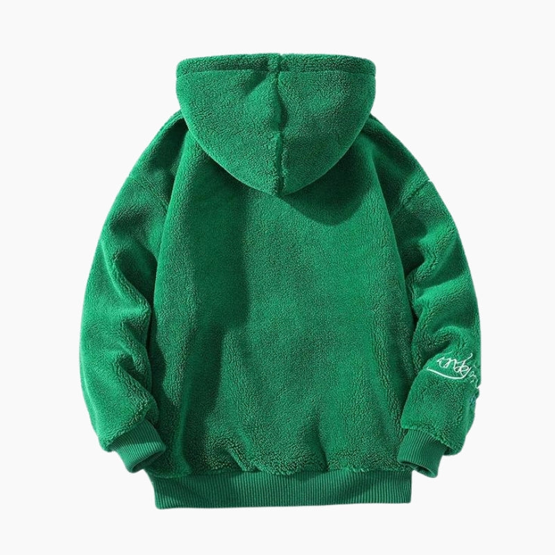 Sweat de couleur verte en matière moumoute pour femme.