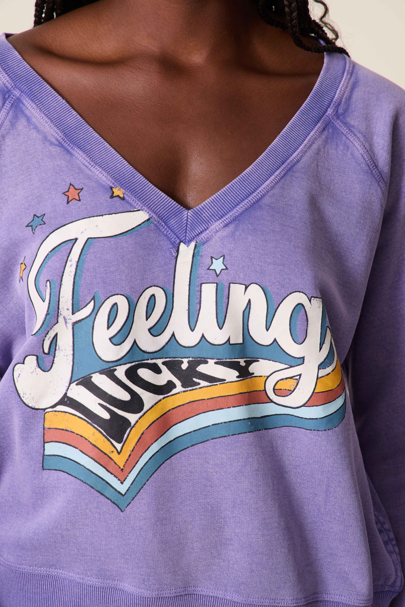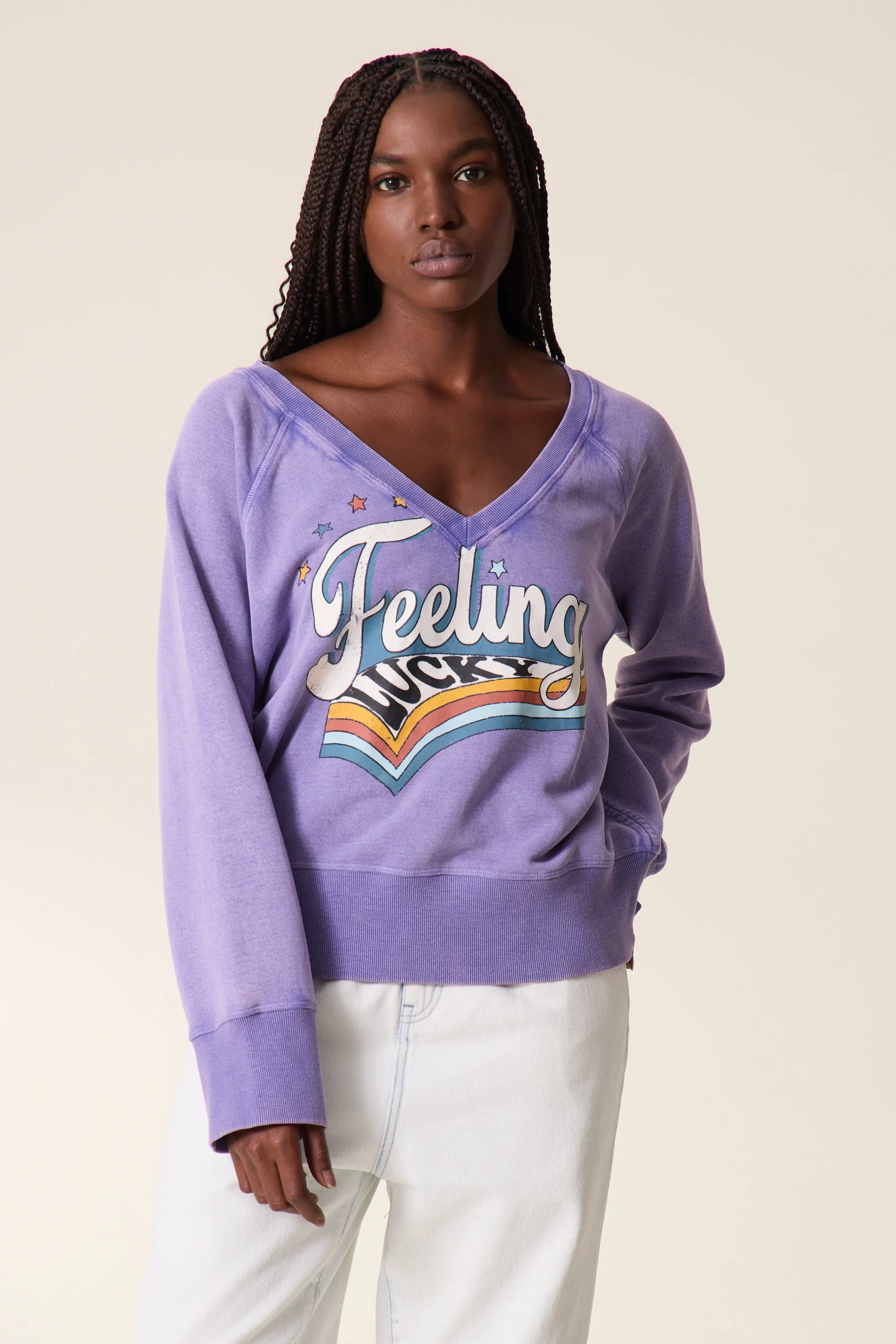 La femme Leon & Harper attire la chance avec son sweatshirt Shavi Lucky! Le message « Feeling Luck » imprimé en typographie rétro amène une allure vintage.
