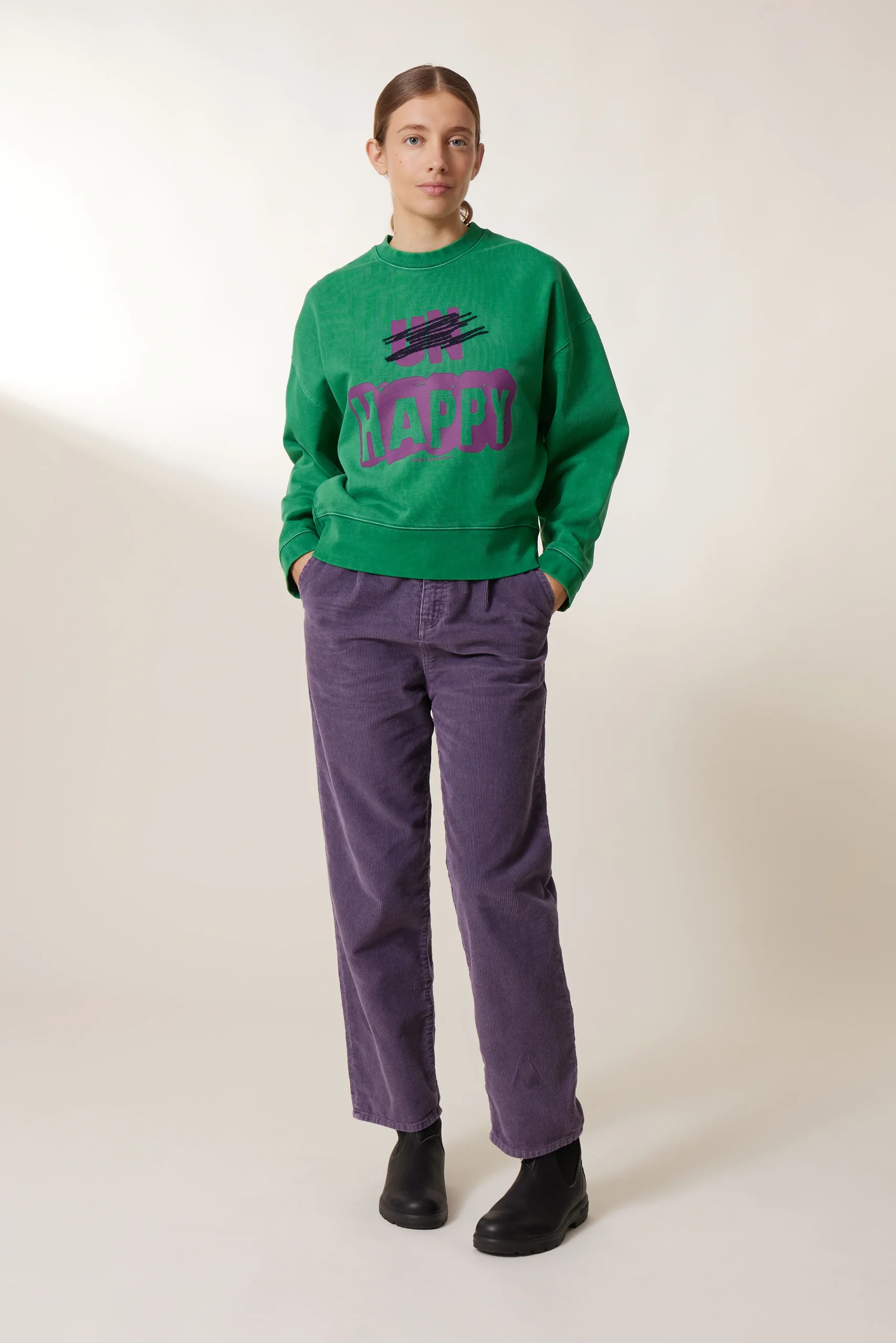 Le sweat-shirt Siena Un est le remède anti-blues pour cet hiver ! Avec ses couleurs et son message positif, la femme Leon & Harper démarre sa journée de bonne humeur.