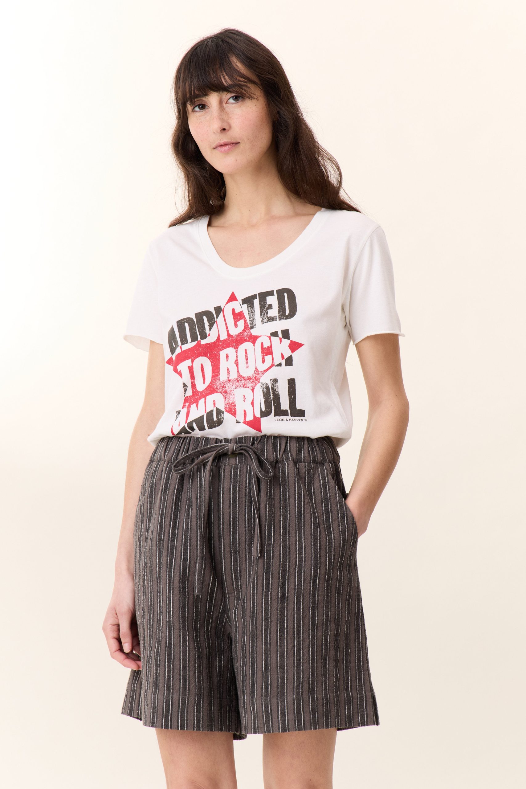 La femme Leon & Harper adopte l’esprit vintage du t-shirt Tizia Addict. Orné de l’imprimé étoilé « »Addicted to Rock and Roll » », ce t-shirt incarne parfaitement l’attitude rock de l’été.