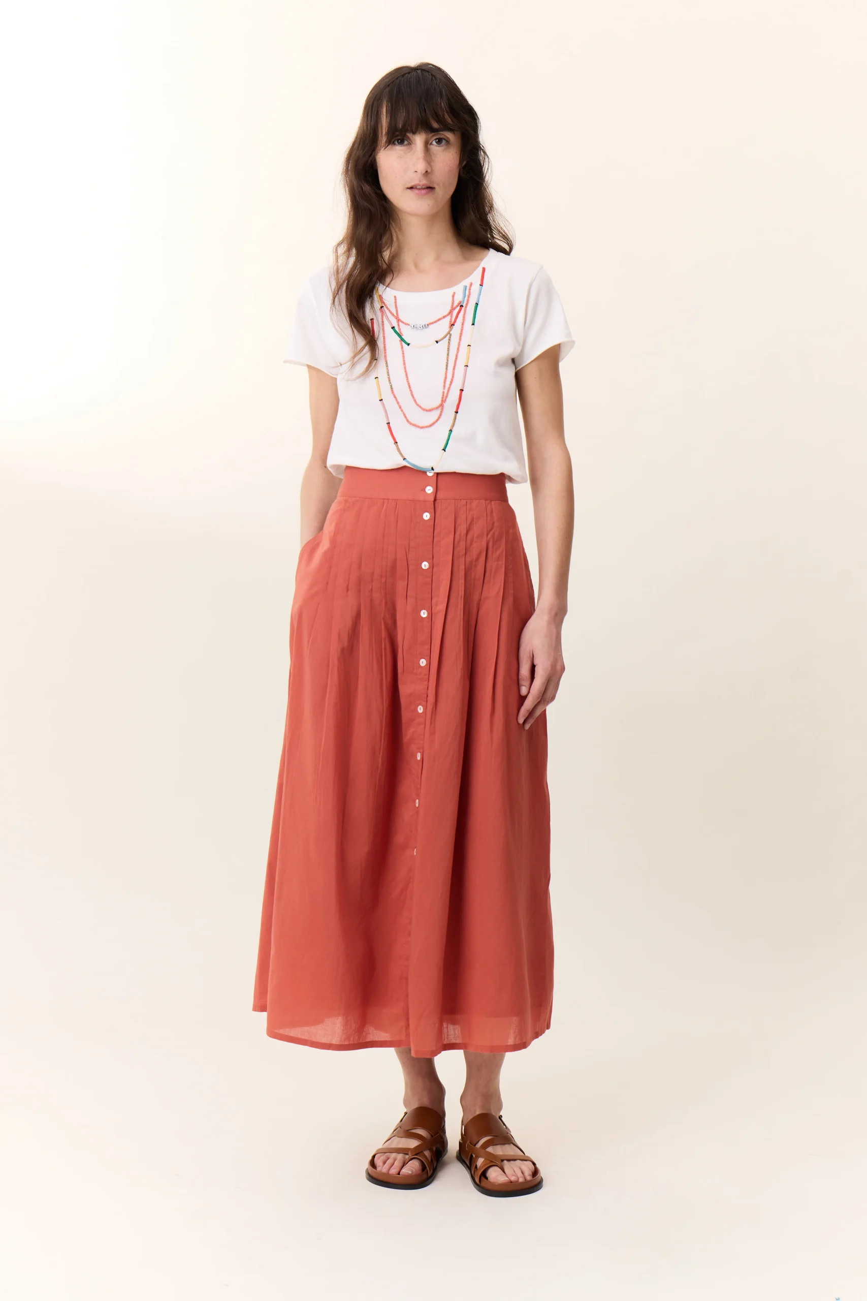 Le t-shirt Toro Beads, aux allures bohème-chic, joue l’illusion d’un collier de perles colorées brodées. Le détail qui change tout ? La petite touche “Happy” confère à la femme Leon & Harper une énergie only good vibes. À glisser sous une veste oversize ou à porter seul pour un effet bijou effortless. – Manches courtes– […]