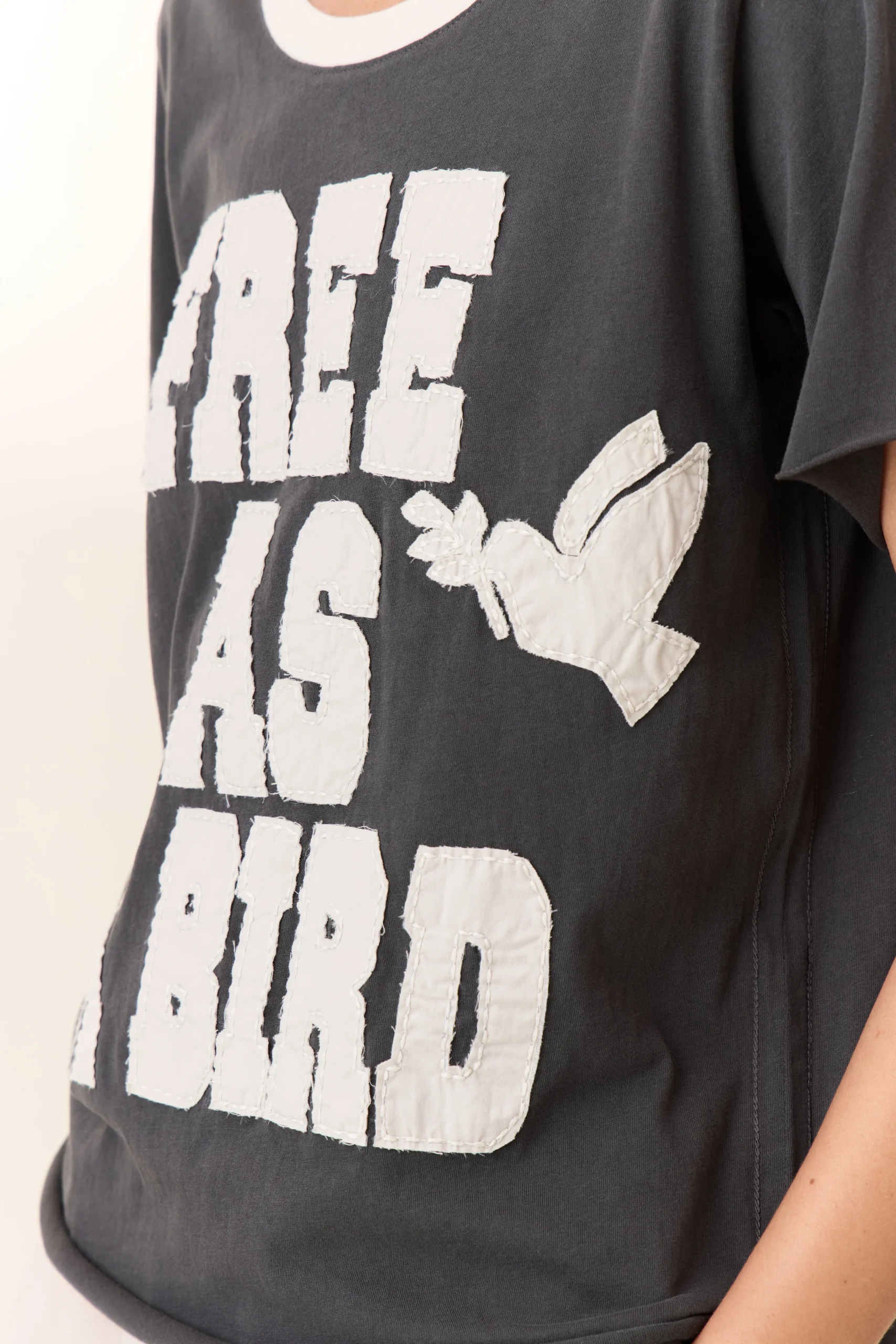 – Imprimé « FREE AS A BIRD » en tissu appliqué