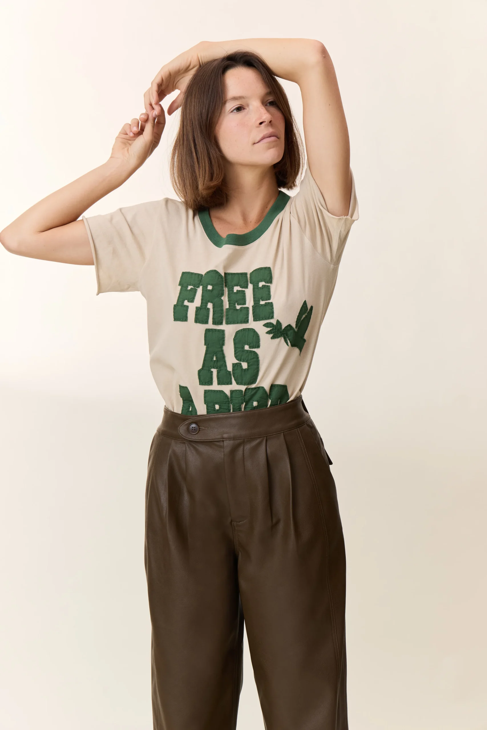 – Imprimé « FREE AS A BIRD » en tissu appliqué